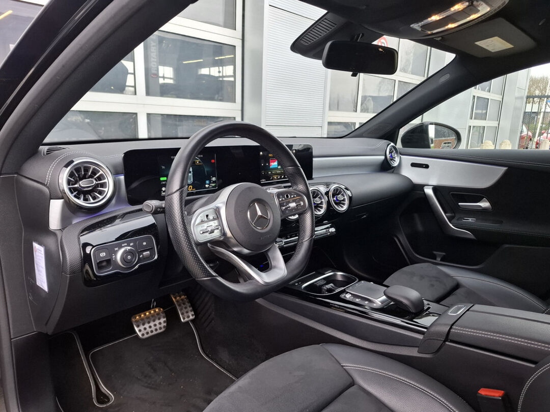 Zoals u mag verwachten van deze Mercedes-Benz A-klasse is hij uitgerust met een reeks aan actieve veiligheidssystemen. De actuele snelheidslimiet, een inhaalverbod en andere verkeersborden; de verkeersborddetectie ondersteunt u tijdens elke rit. Een camera houdt de juiste koers binnen de rijstrook in de gaten en het Lane-keeping systeem corrigeert bij afwijkingen. De forward collision warning geeft een botswaarschuwing als een aanrijding dreigt met een voorligger. Ook helpen het brake assist, vermoeidheidsherkenning en bandenspanningcontrolesysteem, uw rit tot een veilige rit te maken.