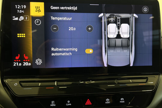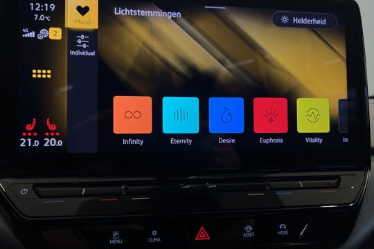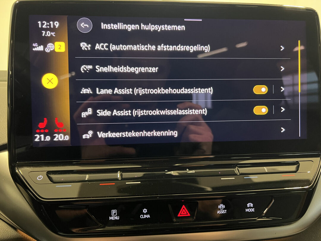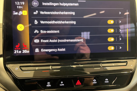 In de Volkswagen ID.4 heeft uw veiligheid en die van uw omgeving prioriteit. Wat deze auto ook kan, is lezen. Hij 'leest' voor u de verkeersborden tijdens de rit en attendeert u erop door ze op het dashboard te projecteren. Deze Volkswagen ID.4 is ook behulpzaam als het gaat om een rechte koers. Het Lane-keeping systeem signaleert en corrigeert als u onbedoeld de rijstrooklijnen dreigt te overschrijden. Op een kop-staartbotsing zit niemand te wachten. Daarom is de forward collision warning onderweg constant alert en berekent via een sensor de veilige afstand tot voorliggers. Ook helpen het head-up display, dodehoekdetectie, hill hold functie, vermoeidheidsherkenning, autonoom remsysteem en bandenspanningcontrolesysteem, uw rit tot een veilige rit te maken.