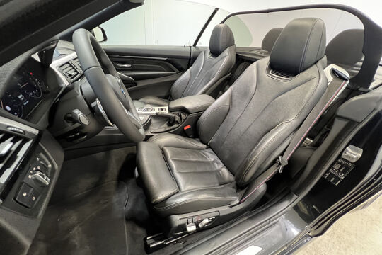 Zodra de zon zich laat zien, kunt u heerlijk genieten achter het stuur van deze cabriolet. Typerend voor Duitse auto's als deze BMW 4-serie Cabrio is dat een mooi ontwerp en uitstekende rijeigenschappen hand in hand gaan. De stijlvol getekende carrosserie verhult een state-of-the-art techniek, motorisch laat deze auto niets te wensen over en het weggedrag van de 4-serie Cabrio is uitstekend. Dankzij de zescilinder benzinemotor en de automatische transmissie, is het autorijden snel en comfortabel. De auto is uitgerust met lederen bekleding. Zit u goed? De stoelen zijn eenvoudig instelbaar dankzij de elektrische bediening met geheugen. De elektrische achterklep opent met een druk op de knop, zodat u gemakkelijk toegang heeft tot de bagageruimte. De elektrische kapbediening is een technisch hoogstandje: het dak opent en sluit zonder dat u hoeft uit te stappen. Tot de uitrusting behoren ook 19 inch lichtmetalen velgen, LED koplampen, sportonderstel, adaptief dempingsysteem, in delen neerklapbare achterbank en elektrisch verstelbare lendensteun.