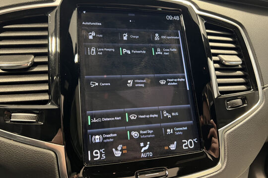 De nieuwste veiligheidssystemen komen in deze Volvo XC90 samen. Verkeersborddetectie herkent tijdelijke en permanente verkeersborden langs en boven de weg. Met het Lane-keeping systeem komt u nooit per ongeluk buiten de rijstrook. Een korte blik over uw schouder bij inhalen of afslaan is niet altijd genoeg. De actieve dodehoekdetectie helpt de veiligheid te vergroten. Ook helpen het head-up display, forward collision warning system, hill hold functie, brake assist, vermoeidheidsherkenning en bandenspanningcontrolesysteem, uw rit tot een veilige rit te maken.