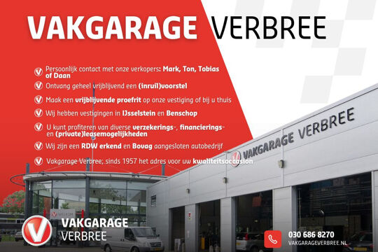 Wat leuk dat u deze auto heeft gevonden! Wij zijn Vakgarage Verbree; als familiebedrijf combineren wij de voordelen van een moderne autodealer met de persoonlijke benadering van een dorpsgarage. Uw adviseurs Tobias, Mark, Swen en Daan vertellen u graag meer. Bereikbaar via telefoon: 030-6868277 of WhatsApp: 030-6868270.