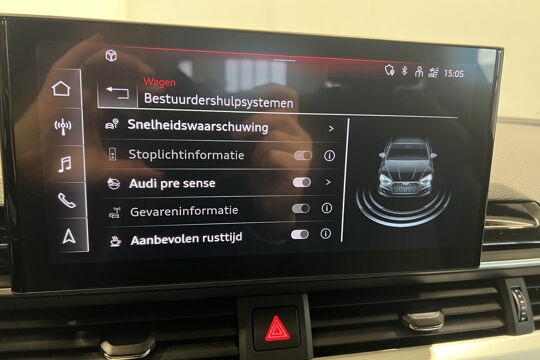 Elektronische veiligheidsvoorzieningen helpen u onderweg om de situatie op de weg te beoordelen. Deze systemen waarschuwen u als er een riskante situatie ontstaat, en kunnen in bepaalde gevallen ook zelf ingrijpen. Onderweg zorgt verkeersborddetectie ervoor dat u geen waarschuwingsbord mist. Forward collision warning waarschuwt bij een dreigende aanrijding en vermindert de gevolgen van een ongeval. Bovenop deze veiligheidsfeatures heeft deze Audi bovendien hill hold functie, brake assist en bandenspanningcontrolesysteem.