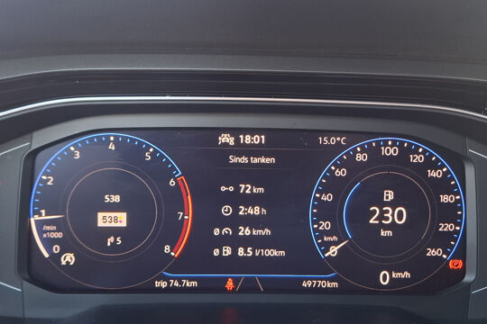 Een cockpit, een informatiecentrum... Wat is de cabine eigenlijk niet? Dankzij het digitale dashboard bent u van alles op de hoogte. Hoeveel ruimte heeft u nog bij het inparkeren? De achteruitrijcamera brengt helder in beeld wat zich achter de auto bevindt en geeft een geluidssignaal. Adaptive cruise control houdt de ingestelde snelheid vast en houdt automatisch afstand tot uw voorligger. Kop aan kont langzaam rijden: dan is afstand houden soms lastig. De file assistent helpt en zorgt automatisch voor veilige ruimte tot de voorligger. Ook als die tot stilstand komt. Dankzij automatische airconditioning is het interieur behaaglijk warm of verfrissend koel. Ook DAB ontvangst, regensensor, automatisch dimmende binnenspiegel, lederen stuur, isofix-aansluiting en usb-aansluiting zijn aan boord.