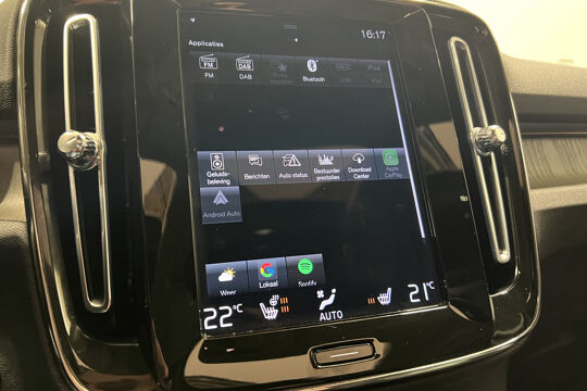 Het is een praktische avonturier, deze Volvo XC40, een auto die in alle situaties zijn mannetje staat. In deze SUV vindt u een driecilinder benzinemotor en een automatische transmissie. Een eyecatcher is het lederen interieur. Maar onderschat ook het voordeel van een aantal 'kleine' details niet, zoals het elektrisch bediende glazen panorama dak en de elektrisch bedienbare achterklep. Stoelverwarming maakt deel uit van de rijke uitrusting van deze auto. In deze auto profiteert u onder andere ook van: 19 inch lichtmetalen velgen, LED koplampen, in delen neerklapbare achterbank, LED-achterlichten, verstelbare lendensteunen en snelheidsafhankelijke stuurbekrachtiging.