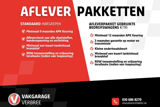 De prijs is inclusief minimaal 9 maanden APK, controle van vloeistoffen, verlichting en bandenspanning, een kwart tank brandstof en RDW tenaamstelling. Bij ons heeft u de keuze de aflevervoorwaarde uit te breiden, zie hiervoor het extra afleverpakket in de fotogalerij van deze auto.