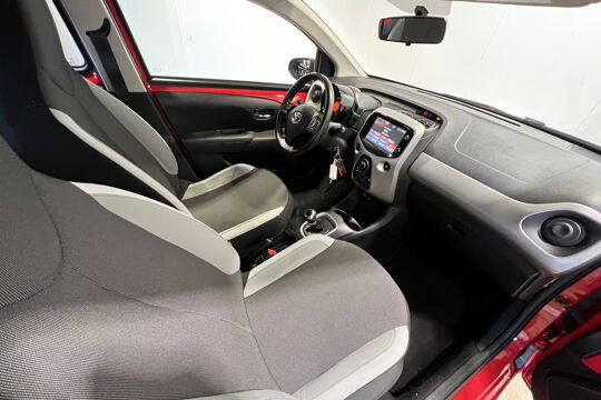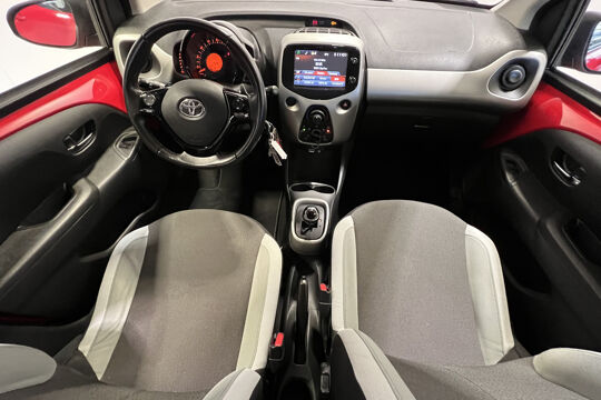In deze Toyota Aygo is elke centimeter goed benut. Functioneel en ergonomisch zit-ie echt superslim in elkaar. Waarin een kleine auto groot kan zijn! De aandrijving van deze Toyota wordt verzorgd door een driecilinder benzinemotor en een automatische transmissie. Ook LED-dagrijverlichting en in delen neerklapbare achterbank zijn aan boord.