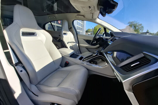 Duurzaam en dynamisch, de Jaguar I-PACE verenigt deze twee uitersten in zich. Dit is een auto uit 2018, er staat 0 kilometer op de teller. Wat een rijervaring, die elektromotor. Forse actieradius, nul uitstoot en heerlijk pittig rijgedrag! De krachtige motor geeft deze Jaguar uitstekende prestaties. Lederen bekleding is een smaakvolle en comfortverhogende optie. Zit u goed? De stoelen zijn eenvoudig instelbaar dankzij de elektrische bediening met geheugen. De bagageruimte is toegankelijk via een comfortverhogende elektrische achterklep. Het panoramadak geeft extra sfeer aan het interieur en biedt een prachtige doorkijk naar buiten. De behaaglijkheid van de verwarmde achterbank zal ook uw passagiers bevallen. De matrix LED-verlichting in de koplampen bestaat uit een raster van lichtpunten met maximale opbrengst. Bij tegenliggers past het systeem precies die punten aan die hinderlijk kunnen zijn. U behoudt maximaal zicht! Bij de rijke uitrusting horen ook 20 inch lichtmetalen velgen, adaptief dempingsysteem, donker getint glas achter en LED-achterlichten.