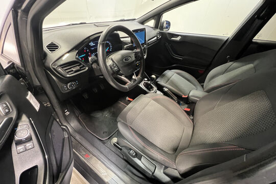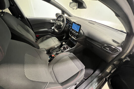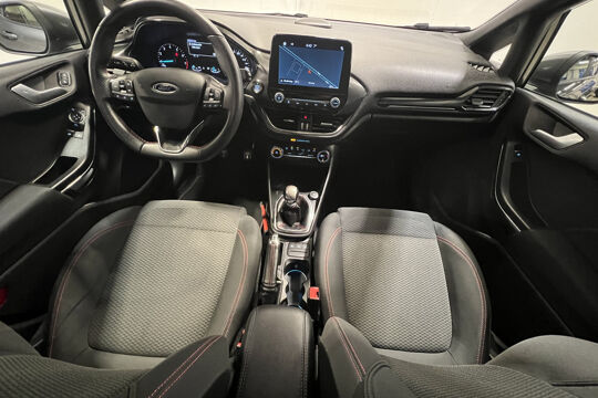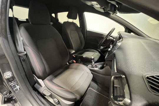 U ziet het al aan de buitenkant en u voelt het zodra u de krachtige motor start, deze sportieve Ford Fiesta is gemaakt om prestaties te leveren. De aandrijving van deze Ford wordt verzorgd door een driecilinder benzinemotor en een handgeschakelde zesversnellingsbak. Uitstekende zitsteun en een strakke look? Daar zorgen de sportstoelen voor! Ook 17 inch lichtmetalen velgen, sportonderstel, LED-dagrijverlichting, in delen neerklapbare achterbank en verstelbare lendensteunen horen tot de voorzieningen op deze auto.