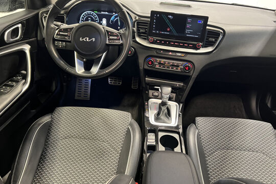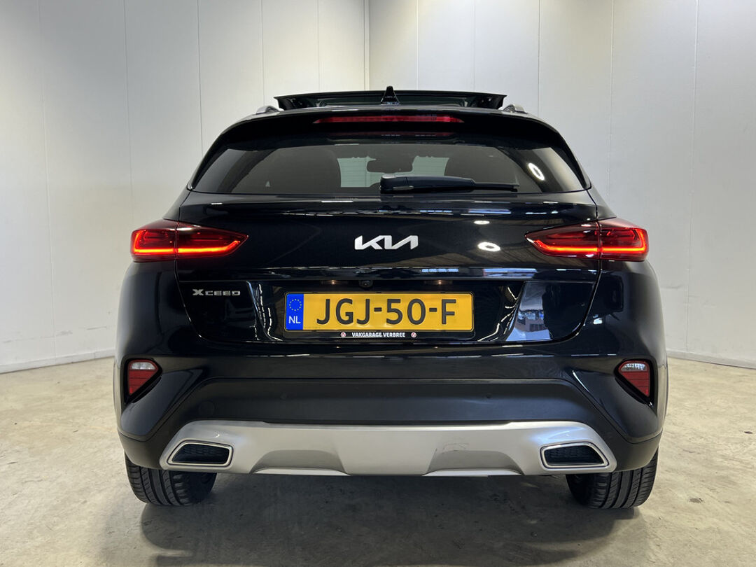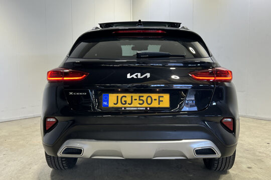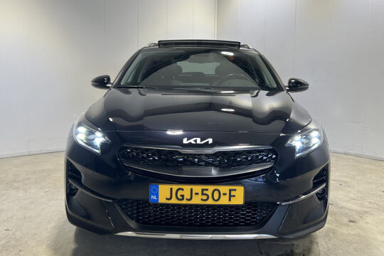 Van uw nieuwe auto verlangt u rijplezier, maar ook optimaal comfort en veiligheid. Daarom is de Kia XCeed de auto die u zoekt. Deze SUV is uitgerust met een benzinemotor en een automatische transmissie. Houdt u van een stijlvolle uitvoering? Dan zal het lederen interieur u zeker bevallen. Tijdens gure dagen is het prettig zitten in de verwarmbare voorstoelen. Een heerlijk zonnetje, of indrukwekkende wolkenpartijen? Bekijk ze onbelemmerd door het elektrisch bediende glazen panoramadak. De bagageruimte is toegankelijk via een comfortverhogende elektrische achterklep. Ook de passagiers achterin ervaren het ultieme comfort, dankzij de verwarmde achterbank. Verder is de Kia uitgerust met: 18 inch lichtmetalen velgen, LED koplampen, donker getint glas achter, in delen neerklapbare achterbank, LED-achterlichten en verstelbare lendensteunen.
