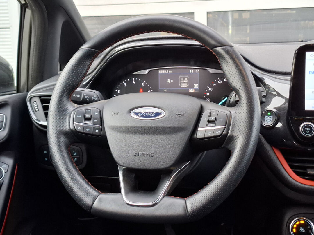 U rijdt gemakkelijk, comfortabel en zonder zorgen met deze Ford Fiesta. Het is een auto van het bouwjaar 2019. De aandrijving van deze Ford wordt verzorgd door een driecilinder benzinemotor en een handgeschakelde zesversnellingsbak. U zit er altijd warmpjes bij door de stoelverwarming. Ook is de auto voorzien van: 18 inch lichtmetalen velgen, halflederen bekleding, LED-dagrijverlichting, donker getint glas achter, in delen neerklapbare achterbank en LED-achterlichten.