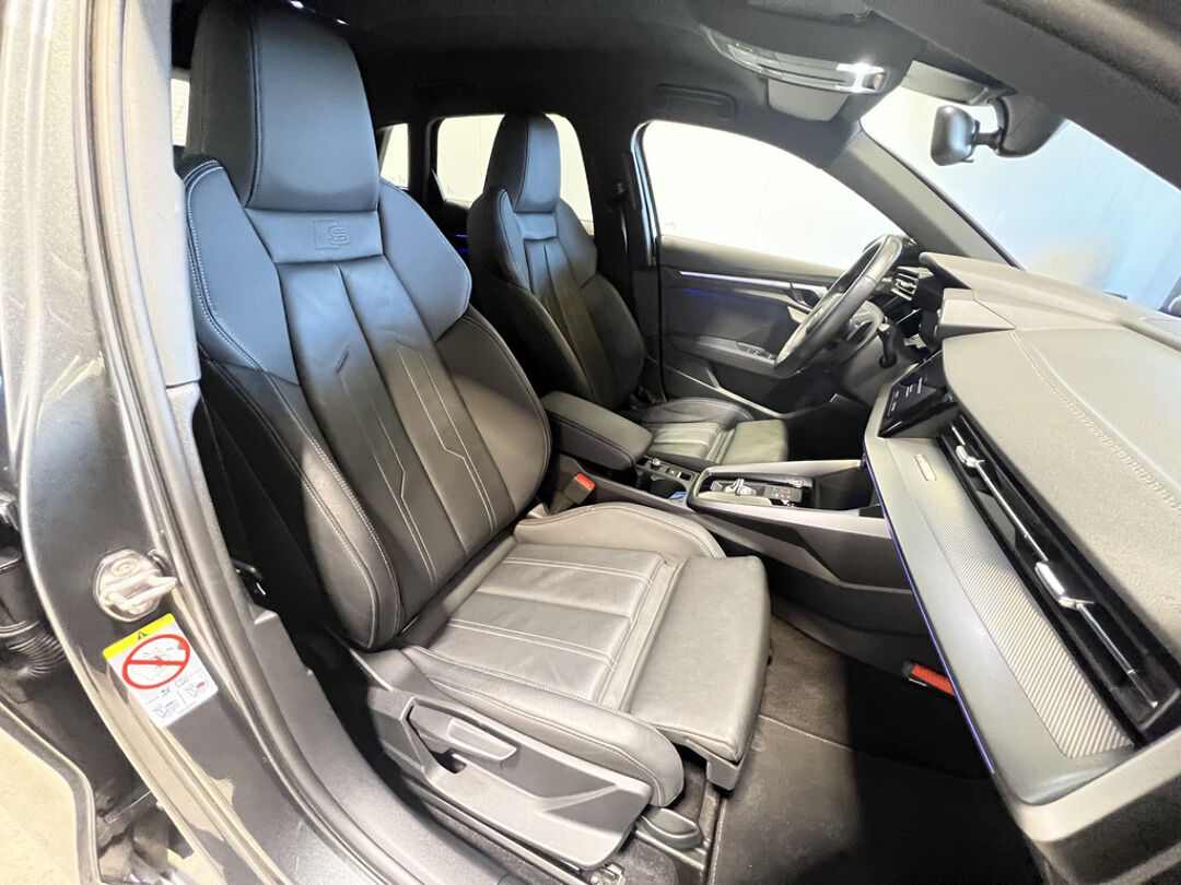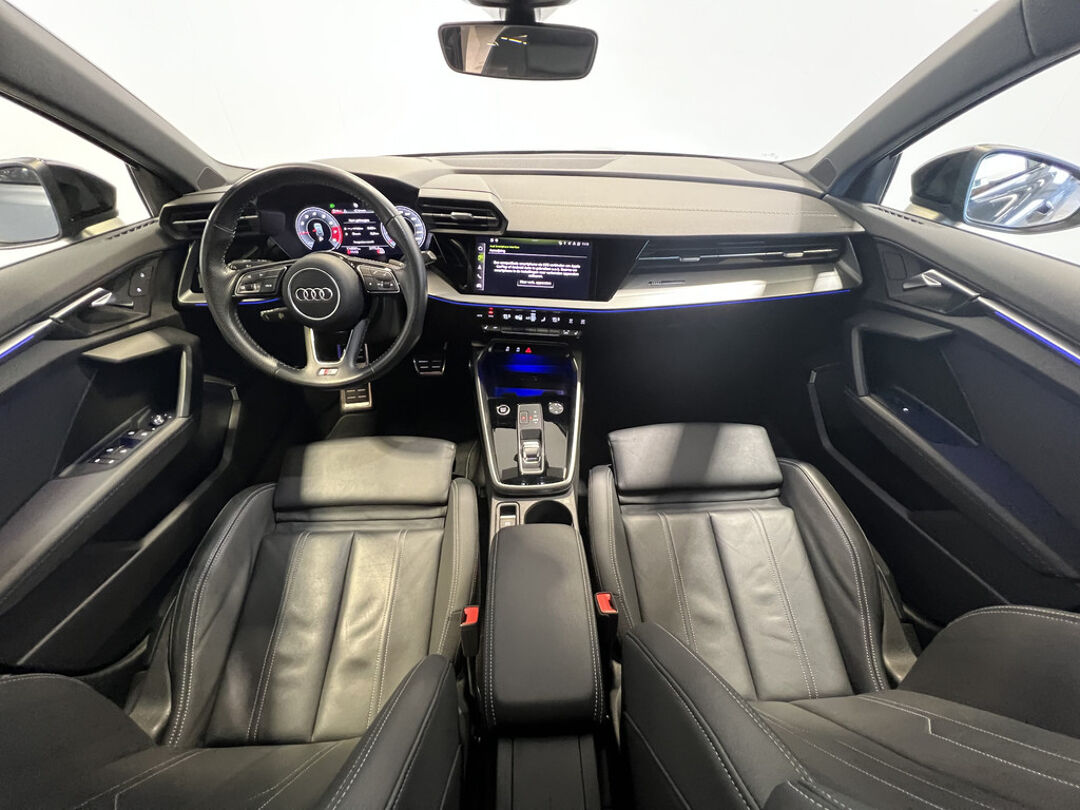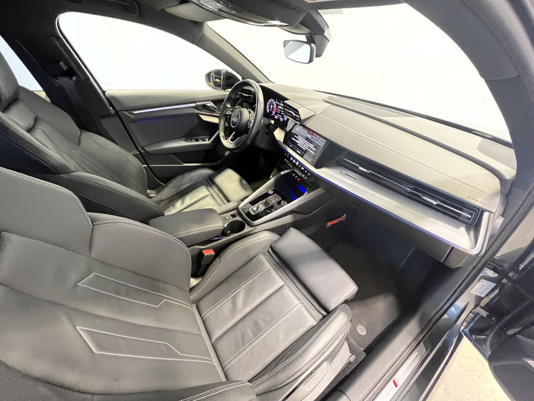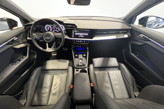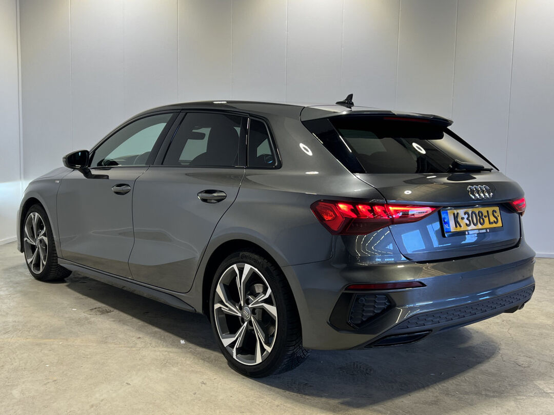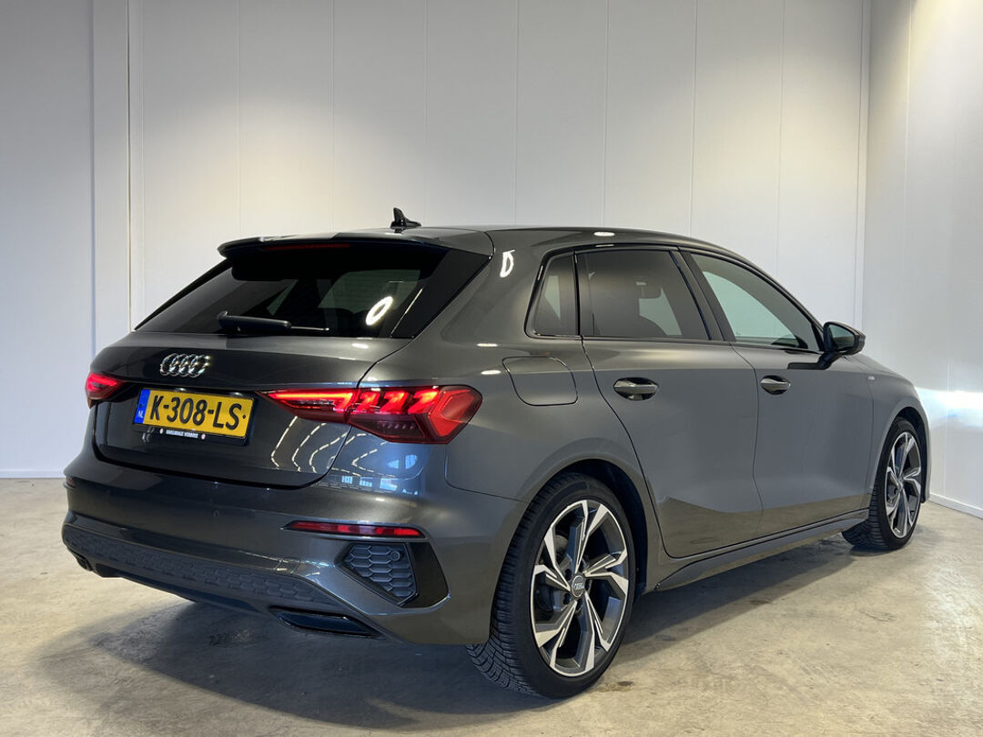 Neem plaats in de cockpit, start de motor en voel het vermogen. Met deze sportieve Audi A3 Sportback hebt u altijd de controle. Ook qua looks springt deze auto eruit, vanwege de fraaie S-Line styling. Hij heeft een benzinemotor en een automatische transmissie. De hoogwaardige uitstraling van deze auto wordt benadrukt door de lederen bekleding. Ga samen met uw bijrijder lekker zitten in de verwarmbare voorstoelen. Zijwaartse g-krachten worden solide opgevangen door de sportstoelen. Verder is de Audi uitgerust met: 18 inch lichtmetalen velgen, Full LED koplampen, sportonderstel, warmtewerend glas, dakspoiler en in delen neerklapbare achterbank.