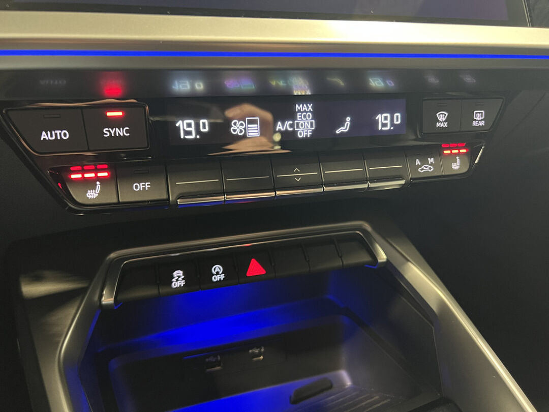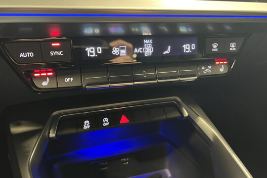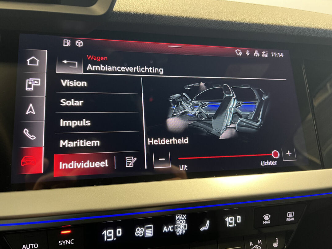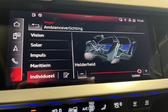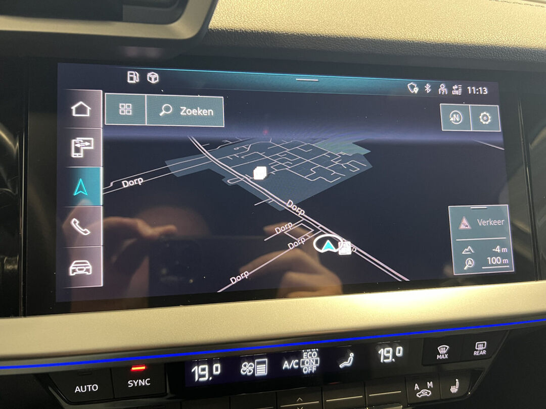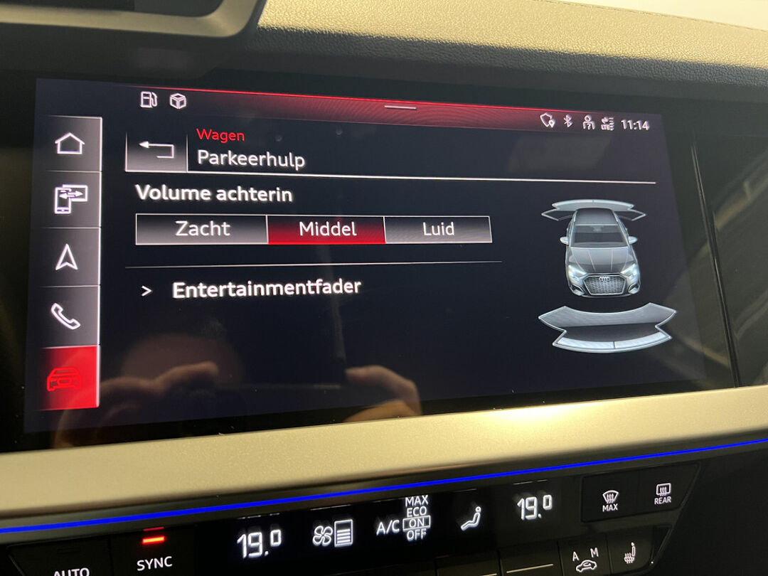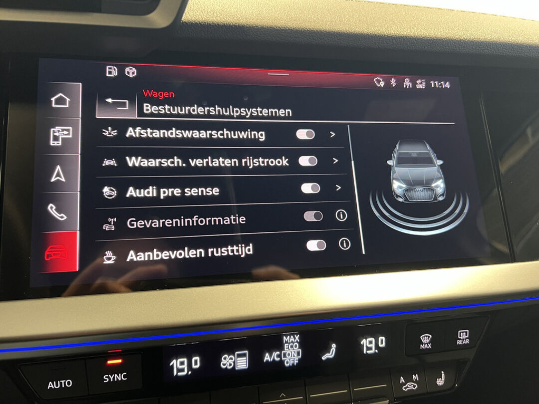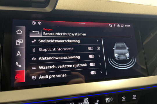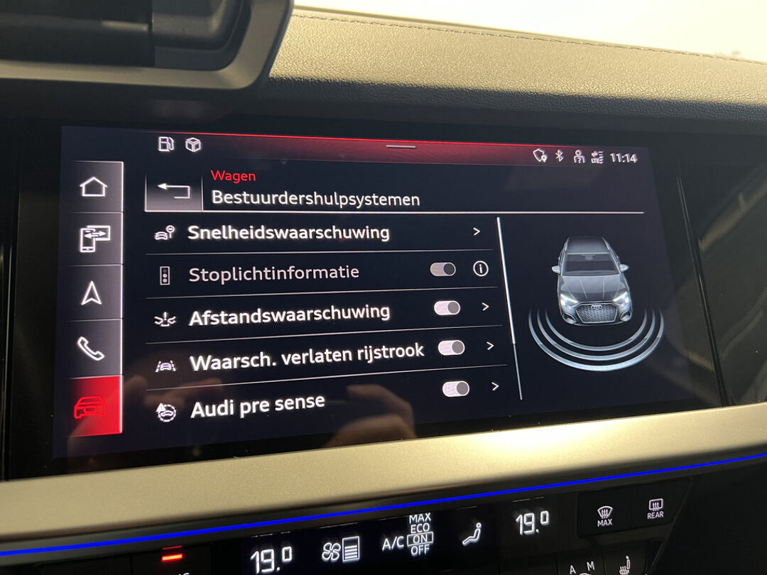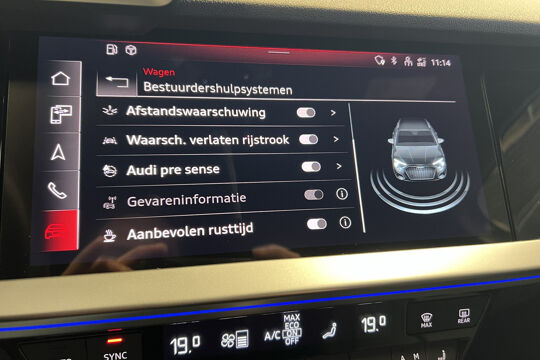 Zoals u mag verwachten van deze Audi A3 Sportback is hij uitgerust met een reeks aan actieve veiligheidssystemen. In het instrumentarium ziet u tijdens de rit ook de belangrijkste verkeersborden aangegeven, die de auto automatisch voor u leest. Het Lane-keeping systeem doet precies wat nodig is: waarschuwen en corrigeren bij onbedoelde overschrijding van de rijstrooklijnen. Een kortere remweg verkleint de kans op een aanrijding. Brake assist helpt actief mee tijdens een noodstop.